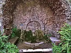It is located within the Jardins de Laribal, in Montjuïc. The fountain is located inside an arch made of rough stone. It is located in an area of gardens, stairways and fountains that lead from the Santa Madrona promenade to the fountain. The whole of the gardens occupies the slope that goes from the highest part of the Laribal Gardens to the Paseo de Santa Madrona. It is a set of paths, terraces and corners that adapt to the relief of the terrain with a gazebo, stairs, ramps and a monumental waterfall with four sections separated by paths and channels.[1]