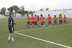 Football in Somalia is run by the Somali Football Federation.[1] (: الصومال لكرة القدم)The association administers the national football team, as well as the Premier League.[2] Football is the most popular sport in Somalia.