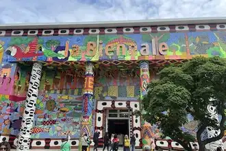 ![]() Central Pavilion in the Giardini della Biennale, featuring a mural by members of Huni Kuin Artists Movement (MAHKU) | |