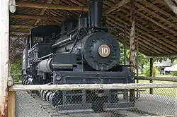 Forks displays one of a few Shay engines remaining in Washington. Shay locomotives are unusual in that they have a crank shaft running down the side, powering all wheels. They were designed to be used to transport lumber out of forests. Rayonier #10 (c/n 3348) was built for stock by Lima in 1930. It has three cylinders and three trucks. The Ozette Timber Company bought it 11 years later. In 1945 it was acquired by Rayonier for their lumber operation near Forks. It was retired near the north end of Forks in Tillicum Park in 1959.