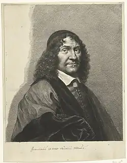 Franciscus Sylvius (Dutch: [frɑnˈsɪskʏs ˈsɪlvijʏs], Ecclesiastical Latin: [franˈtʃiskus ˈsilvi.us]; born Franz de le Boë; 15 March 1614 – 19 November 1672) was a Dutch physician and scientist (chemist, physiologist and anatomist) who was an early champion of Descartes', Van Helmont's and William Harvey's work and theories. He was one of the earliest defenders of the theory of circulation of the blood in the Netherlands, and commonly falsely cited as the inventor of gin[2] – others pinpoint the origin of gin to Italy.[3]