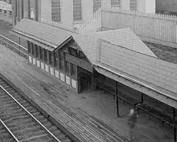 The North Pennsylvania Railroad was the first to lay track through the area in 1854 to Jenkintown, opening the line the following year. The North Pennsylvania Junction station was erected on the east side of 5th Street at Tioga Street, which serviced Franklinville. A new station was erected in 1889. To the east was the North Penn freight station, on the north side of the tracks, west of 2nd Street. The Philadelphia and Reading Railway Company line from the south joined the North Pennsylvania Railroad here and a waiting shed allowed trains heading north and south to back up and take up passengers, next to the S. L. Allen & Company factory. The Pennsylvania Railroad Company tracks also joined here from points east.[13]