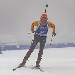 Franziska Hildebrand (born 24 March 1987) is a former German biathlete.[2] Hildebrand started in her first world cup races in the 2011/12-season after winning three medals at the two previous European Championships. In 2014, she participated in the Winter Olympics in Sochi. She was officially nominated by the DOSB on 23 January 2014. She retired after 2021/2022, one day after she announced pregnancy.[3][4]
