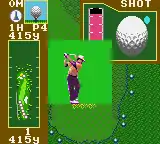 While the ball is on the ground, the player is shown an overhead view and must analyze it before swinging the golf club. The player can also choose a caddie as well. A password is given every time the player advances in the tournament.