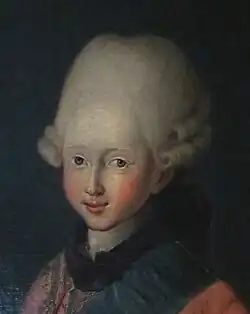 - ^ Genealogie ascendante jusqu'au quatrieme degre inclusivement de tous les Rois et Princes de maisons souveraines de l'Europe actuellement vivans [Genealogy up to the fourth degree inclusive of all the Kings and Princes of sovereign houses of Europe currently living] (in French). Bourdeaux: Frederic Guillaume Birnstiel. 1768. p. 56.