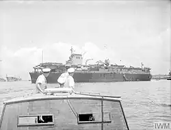 The day after the French declaration of war against Germany on 3 September 1939, Béarn received orders to fly off her aircraft. On 5 October, the carrier was nominally assigned to Force L, together with the battleship Dunkerque and three light cruisers, which was tasked with searching the West Indies for the German cruiser Admiral Graf Spee. In reality the carrier remained in Brest, conducting anti-aircraft exercises and beginning the process of being modified to serve as a tanker for Breguet 521 Bizerte and Laté.523 flying boats. Although the modifications principally consisted of an addition of a 12-meter (39 ft 4 in) boom to support a refuelling hose, the work lasted from October to April 1940. While docked at Laninon on 23 March, two crewmen were severely injured when blasting work nearby on a new slipway caused the front of the carrier to be struck by numerous pieces of rubble.[37]
