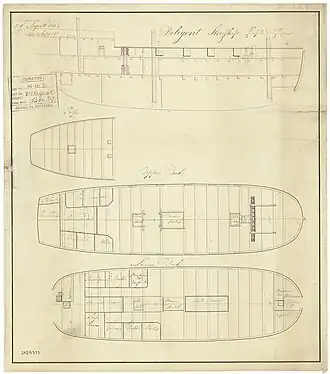 ![]() Incomplete plan of Diligente, sister ship to Naïade, drawn 1811 by Edward Sison, Master Shipwright, Woolwich Dockyard, National Maritime Museum | |