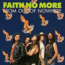 "From Out of Nowhere" is the first track on Faith No More's third studio album, The Real Thing (1989). It was also the first single to be released from it and to feature Mike Patton on vocals. It was first released in the United Kingdom on October 30, 1989, but did not appear on the UK Singles Chart. It was re-released on April 2, 1990, after the success of "Epic", and it reached number 23 on the UK chart.
