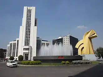 The Fuente de la República (lit. transl. Republic Fountain) is a carbon steel fountain and sculpture installed in Mexico City, Mexico. It was inaugurated on 13 December 2007 by Marcelo Ebrard, the Federal District's head of government, and was placed at the intersection of Avenida Paseo de la Reforma, Avenida Juárez and Avenida Bucareli, in the Cuauhtémoc borough. The fountain was created specifically for the celebrations of the 200th anniversary of the country's independence in 2010. It was designed by Manuel Felguérez, who also designed the Puerta 1808 sculpture found in front of it.