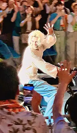 From October to November, "Fujii Kaze "Help Ever Arena Tour"" was held. The concert movie (Blu-ray) of the final performance at Yoyogi National Gymnasium was released on June 14, 2022[23] and ranked No. 1 for the second consecutive year,[24] which made Fujii Kaze the first solo artist in the history to have two consecutive No. 1 for its concert movies. On December 31, 2021, Fujii performed on the prestigious year-end music program, NHK Kōhaku Uta Gassen, for the first time. He performed "Kirari" first, which was pre-recorded at his parents' home in Okayama, Japan. Fujii then made a surprise live appearance at Kohaku venue at the Tokyo International Forum, where he performed "Mo-E-Yo" live with piano on stage.[25] In the grand finale, Fujii accompanied Misia, who sang "Higher Love", which was the first song Fujii had composed for another artist.[26] Fujii took part in piano and the chorus.[27]