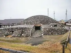 Fukiishi (葺石 or 葺き石 "roofing stone") were a means of covering burial chambers and burial mounds during the kofun period of Japan (c. 250–538). Stones collected from riverbeds were affixed to the slopes of raised kofun and other burial chambers. They are considered to have descended from forms used in Yayoi-period tumuli. They are common in the early and mid-Kofun periods, but most late Kofun-period tumuli do not have them.