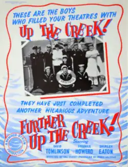 Further Up the Creek is a 1958 British comedy film written and directed by Val Guest and starring David Tomlinson, Frankie Howerd, Shirley Eaton, Thora Hird and Lionel Jeffries.[1] It served as a follow-up to Up the Creek (1958), with Peter Sellers not reprising his role because it clashed with the filming of The Mouse That Roared (1959). Frankie Howerd replaced him.[2]