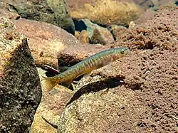 Larvae and juveniles are located in schools of open water in slow moving areas of runs and riffles. Adults inhabit slow flowing tide pools with abundant instream and sidestream vegetation cover.[5]