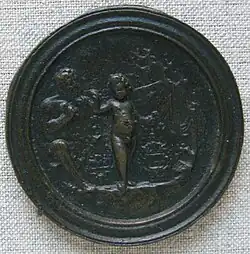 | 68 | Mars and Victory, before a Ruined Arcade (c. 1510/1515[?]) | ![]() | 10.5 diam.; bronze | Examples in 8 known repositories, with 5 others formerly recorded | Molinier 1886, 1:??, no. 186; Pope-Hennessy 1965:49, no. 158; Lewis 1989: 140, no. III.B.3 |