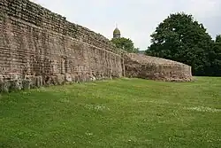 The curtain enclosure, with a width of approximately 4.50 meters,[B 1] reached a height of approximately 10 meters.[Y 2] A glacis was used to safeguard the curtain enclosure.[B 1]