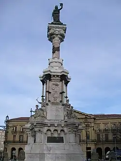 To commemorate this event, many towns and cities in Navarre named some of their most important streets and plazas "Fueros". In Pamplona, the people had the Monument to the Fueros erected as a symbol of Navarrese freedom, placing it in front of the Navarrese Government Building. It was designed by architect Manuel Martínez de Ubago and finished in 1903, but never inaugurated.