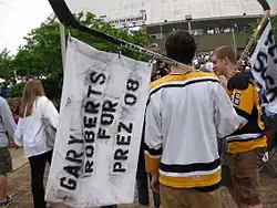 Roberts did not last much longer in Florida as, following a 40-point season in 2005–06, the Panthers sought to trade him to the Pittsburgh Penguins late in the 2006–07 season. Several members of the Penguins, including Mario Lemieux and general manager Ray Shero, sought to convince Roberts to agree to the deal as he was initially unsure about leaving Florida but ultimately agreed to the trade.[40] The deal was completed at the February 27, 2007, trade deadline as Pittsburgh sent prospect Noah Welch to Florida in exchange for Roberts.[41] He was brought in to add a leadership presence to a young Penguins team.[42] He finished the regular season with 13 points in 19 games in Pittsburgh and helped the Penguins reach the playoffs for the first time in six years.[43]