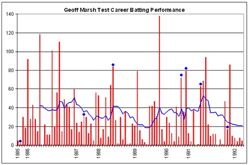 He is best remembered for his part in the Australian team that won the 1987 World Cup in India, including an unbeaten 126 against New Zealand in Chandigarh, while he also captained his country in four matches. Over his career Marsh was a solid performer in One Day International cricket, with a batting average of nearly 40 but had a very low strike rate compared to more recent opening batsman.