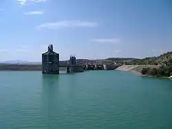 The Medjerda River rises in Algeria and flows east through the third of the country with reliable rivers, the north. It empties into the Gulf of Tunis and Lake of Tunis. At 450 km (280 mi) it is the longest river. It is also known as the wādi (or oued) Majardah and Wadi Mejerha and it was known as Bagrada in ancient times. It rises in a further section of the Tell Atlas in Algeria, staying to the south of the Tell escarpment while within the country. It has been dammed at the Sidi Salem Dam.[1] The Oued Zouara rises in the country's own section of the Tell. It has been dammed by the Sidi el Barrak Dam which forms a large lake widely used across the north and centre of the country in an advanced water management project.