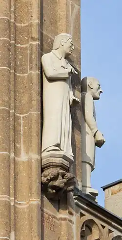 In 1980 there was a public apology on the part of the church, issued by the Cologne City Church Association. In 1981, a commemorative plaque for Georg Fritze was installed in the inner courtyard of the Kartäuserkirche, designed by the Cologne artist and architect Rudolf Alfons Scholl.[2] Since the same year, the church district of Cologne-Mitte has been giving the Georg Fritze commemorative gift every two years to “people and groups who work for the victims of dictatorship and violence”.