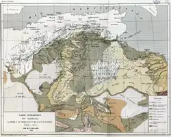 In 1884 a geological section under Rolland was added to the Tunisian Scientific Exploration Mission.[8] The Mission Scientifique de Tunisie (1885–87) was led by the botanist Ernest Cosson (1819–89).[9] Rolland was assisted by Philippe Thomas from 1885 and Georges Le Mesle in 1887. Rolland covered the centre of the country, while Thomas worked further south and Le Mesle worked mainly in the north, apart from an expedition to the extreme south.[8] The team gave good descriptions of the Jurassic of the Zaghouan region and the Eocene of the Maktar and Kairouan regions.[9] As early as 1885, Rolland emphasized the regional importance of the great fault of Zaghouan.[8] In 1902 he was asked by the Ministry of Education to write all the results of the Tunisian Scientific Exploration Mission, but he had to refuse for health reasons.[8]