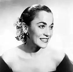 Through 1949 and 1950 she appeared on TV shows Cavalcade of Stars and All Star Revue. In 1951 she signed with Mercury Records where she ultimately had success "sticking with plain Georgia Gibbs". Possessed of a versatile voice, she cut a long list of well-received records in every category from torch songs to rock-and-roll, jazz, swing, old fashioned ballads and cha-chas. The most successful, 1952's "Kiss Of Fire", which she performed on The Milton Berle Show in that spring, reached No. 1 on the pop music chart.[11] The disc sold in excess of one million copies giving Gibbs her first gold disc.[12] "Kiss of Fire" borrows the tune of the tango El Choclo by Ángel Villoldo, and the lyrics, arrangement and delivery communicate passion on a Wagnerian scale.