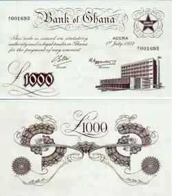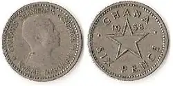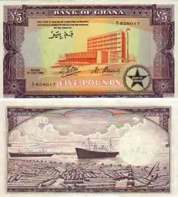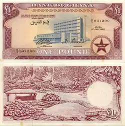 | Preceded by: British West African pound Reason: independence (in 1957) | Currency of Ghana 1958 – 1965 | Succeeded by: First Ghanaian cedi Reason: decimalisation Ratio: 2.4 cedi = 1 pound, or 1 pesewa = 1 penny |