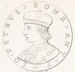 Giampetro Gonzaga (died 1511) was an Italian soldier of the 'Palazzolo' or 'Nobili' branch of the House of Gonzaga. He married Costanza Stanga di Cremona then Agostina Martinengo.[1]