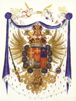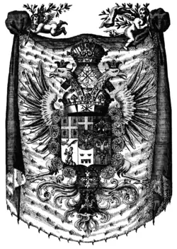 Despite the earlier position of the Holy Roman Empire in favor of Farnese, Lazier managed to secure the recognition of Holy Roman Emperor Charles VI and the imperial government.[1][27] On 5 April 1720, Lazier received an imperial diploma which granted him the right to grant titles of nobility. It is possible that the motivation for Charles to support Gian Antonio was that Farnese had sided against him in the recent War of the Spanish Succession (1701–1715).[1] Also of concern to Charles was that the Spanish royal family was in Farnese's direct line of succession, meaning that an enemy dynasty stood to inherit the Constantinian Order.[30] From his recognition by Charles onwards, Lazier mainly resided in and operated out of Vienna.[31] At this time, there was particular interest in Byzantine culture in the city. The Habsburg monarchy (the lands ruled directly by Charles) had enjoyed a string of military successes against the Ottoman Empire under the general Prince Eugene of Savoy, and an eventual "recapture" of Byzantine territory seemed plausible. The idea of Byzantium, in their minds a glorious eastern Christian empire, still enjoyed a major impact on European consciousness.[27]
