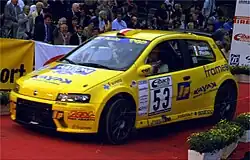 After competing in karting from 1981, Basso has been rallying since 1994.[1] Basso has driven Fiats throughout his rallying career. He made his World Rally Championship debut on Rallye Sanremo in 1998, in a Fiat Seicento.[2] In 2001 and 2002, he competed on WRC rounds in the Junior World Rally Championship in a Fiat Punto S1600, finishing fifth in 2001 and fourth in 2002.[2] In 2006, Basso won the inaugural Intercontinental Rally Challenge and the European Rally Championship in a Fiat Grande Punto S2000 for Abarth.[1] In 2007, he won the Italian Rally Championship.[1] In 2009, he won again the European Rally Championship, driving an Abarth Grande Punto S2000.