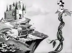 Giantland is a 1933 animated short film produced by Walt Disney Productions and distributed by United Artists. The film is an adaptation of the fairy tale "Jack and the Beanstalk" with Mickey Mouse in the title role. Mickey is voiced by Walt Disney and Mickey's nephews are voiced by Marcellite Garner, who at the time usually voiced Minnie Mouse.[2] It was the 62nd Mickey Mouse short film, and the twelfth of that year.[3]