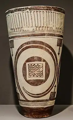 Giparu or, more correctly, gipar (Sumerian: ĝipar, Akkadian: gipāru) is a central concept of both the Sumerian belief system and temple architecture. Typically translated as 'cloister', the actual meaning of gipar includes multiple linked concepts. The giparu was originally a woven reed mat used as wedding bed.[1] Its symbolic meaning expanded to include the idea of the generative power of fertility to create and sustain life. In this sense the giparu expressed multiple ideas of abundance, the storehouse containing abundance, as well as a point of union with the generative power itself. In its role as point of union, the giparu was residence of the en, where the hierosgamos was consummated. Often the giparu temple was built over a giparu mat embedded in the structure. For this reason, cloister, connoting the residence of a priest, is given as the primary definition (ePSD).[2]