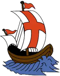 All Girlguiding BGIFC members wore the galleon badge on their uniform. The badge depicted a galleon sailing across the ocean. The colours of the Union Flag, red, white and blue, are all present. The ship symbolised Guiding overseas. The red cross on the white mainsail is a crusader cross, symbolising the adventurous and crusading spirit of the people who leave their home country to live and work abroad.