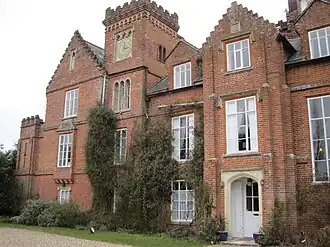 The Gissing estate dates back to the 15th century when it was first owned by the Kemp family.[1] The present Hall was mostly built in the 1820s by the Reverend Sir William Robert Kemp. He graduated from Cambridge in 1813 and in 1816 became the Rector of Gissing. He was then in the interesting position of being both Lord of the Manor and spiritual leader so decided to combine the rectory with his new residence thus creating the present Gissing Hall.[2]