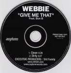 "Give Me That" is a song performed by American rappers Webbie and Bun B from the former's 2004 collaborative album with Lil' Boosie, Gangsta Musik. It was released on May 19, 2005 through Trill Entertainment with distribution via Asylum Records as the lead single from Webbie's debut studio solo album Savage Life. Produced by MouseOnDaTrack, it contains elements of Snoop Dogg's "Beautiful".