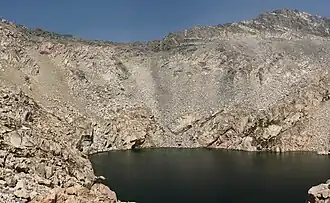 Glen Pass (also known as Blue Flower Pass) is a mountain pass in the Sierra Nevada, located in Kings Canyon National Park, eastern Fresno County, California, United States. This pass, on the John Muir Trail, links Rae Lakes at 10,544 feet (3,214 m) elevation with Charlotte Lake at 10,499 feet (3,200 m) elevation.