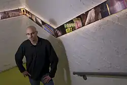Transit a series of site-specific installations, uses lighting and backlit photographs—shot in and around the transit systems of Tokyo, Osaka and Bangkok—to create a continuous though disjunctive cinematic narrative. These installations take a different shape and length at each location, engaging the space of the interior architecture.[4] Imagery includes signage, lighting, shrines, people, and plant life, some blurred—shot while in motion, and others while stationary, as if momentarily arrested.[5][6]