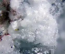 Godovikovite is a rare sulfate mineral with the chemical formula: (NH4)Al(SO4)2. Aluminium can partially be substituted by iron. Hydration of godovikovite gives the ammonium alum, tschermigite. The mineral forms cryptocrystalline, often porous, masses, usually of white colour. Single crystals are very small hexagonal blades. Typical environment for godovikovite are burning coal sites (mainly dumps).[2] There the mineral acts, together with millosevichite, as one of the main components of so-called sulfate crust.[3][4]