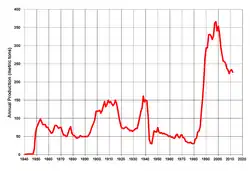 - ^ "Gold mine production". Goldhub. London: World Gold Council. 4 April 2019. Retrieved 21 January 2020.