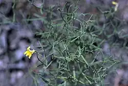 Goodenia cirrifica is an ascending, widely branched herb that typically grows to a height of 40 cm (16 in) long and has sticky foliage and zig-zagged branches. The leaves at the base of the plant are short-lived, lance-shaped to egg-shaped with the narrower end towards the base, up to 30 mm (1.2 in) long and 8 mm (0.31 in) wide, the stem leaves linear and 10–50 mm (0.39–1.97 in) long. The flowers are arranged in racemes up to 300 mm (12 in) long on a peduncle 5–20 mm (0.20–0.79 in) long with leaf-like bracts at the base. The sepals are narrow elliptic to lance-shaped, 2–3.5 mm (0.079–0.138 in) long, the petals yellow, 7–10 mm (0.28–0.39 in) long. The lower lobes of the corolla are 2–3 mm (0.079–0.118 in) long with wings about 1 mm (0.039 in) wide. Flowering occurs from March to October and the fruit is an oval capsule about 5 mm (0.20 in) long.[2]