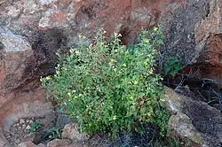 This goodenia grows at the base of laterite breakaways near Cue in the Murchison and Yalgoo biogeographic regions of Western Australia.[2][3][4]