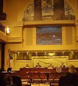 Terms are staggered, with the mayor and councilors for districts 1 and 2 elected in the same years as presidential elections, while the auditor and the councilors for districts 3 and 4 elected in the same years as gubernatorial elections.[12] The City Council convenes on Wednesday mornings and Wednesday afternoons in the council chamber on the second floor of Portland City Hall, and meetings are open to the public.[12]