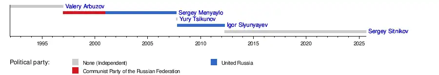 | 1 | | Valery Arbuzov (born 1939) | 14 December 1991[1] – 5 January 1997 | Independent | ||