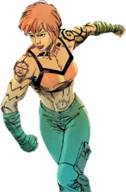 Grace Choi is a fictional character appearing in American comic books published by DC Comics. The character was created by writer Judd Winick and artist Tom Raney, first appearing in Outsiders (vol. 3) #1 (August 2003) in the Modern Age of Comic Books.[1] Grace is introduced as a young Asian American woman using her powers of superhuman strength, healing, and enhanced durability to make a living as a nightclub bouncer, who is reluctantly recruited by her superhero acquaintance Roy Harper to join his new crew of heroes, the Outsiders.