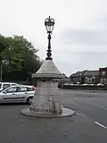 | Street lamp and fountain | West Derby Village 53°25′58″N 2°54′34″W / 53.43266°N 2.90946°W | 1894 | The lamp and drinking fountain are opposite the main entrance to Croxteth Hall. They were designed by A. P. Fry, and are in stone and bronze. They stand on the round base with buttresses, and have a niche with mosaic, and a drinking bowl for dogs. At the top is a cornice with an inscription, and an elaborate lamp and a lantern.[12][16][66] | |