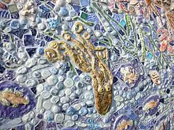 Close-up of a mosaic image of an octopus on the grounds of Graham Hill Elementary