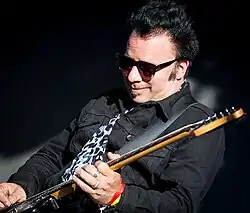 His musical setup often includes a range of guitars, predominantly Fender Telecasters customized with double humbucker pickups and tremolo arms. He has also utilized a Fender Tele-sonic with a Bigsby tremolo unit.