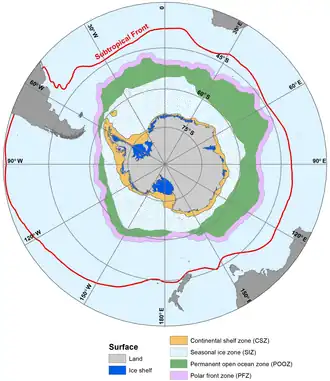 - ^ Orsi, Alejandro H.; Whitworth, Thomas; Nowlin, Worth D. (1995). "On the meridional extent and fronts of the Antarctic Circumpolar Current". Deep Sea Research Part I: Oceanographic Research Papers. 42 (5): 641–673. Bibcode:1995DSRI...42..641O. doi:10.1016/0967-0637(95)00021-W.