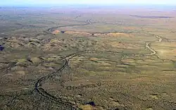 As Great Northern Highway heads north-east from Wubin out of the Wheatbelt, the vegetation changes to arid shrubland. In the Mid West region, the long stretches between settlements show few signs of human activity, other than the highway itself. The first such settlement is Paynes Find, 154 kilometres (96 mi) out from Wubin. At this point the highway heads north again, reaching Mount Magnet after 143 kilometres (89 mi), and then Cue after another 80 kilometres (50 mi). The road travels north-east for 115 kilometres (71 mi) to Meekatharra, and then has a long 412-kilometre (256 mi) stretch up to the northern edge of the Mid West at the Fortescue River, near Newman Airport.[22][23] Halfway along this stretch the highway passes a roadhouse at Kumarina.[24]