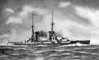 Following the Greco-Turkish War of 1897, during which the Ottoman fleet had proved incapable of challenging Greece's navy for control of the Aegean Sea, the Ottomans began a naval expansion program, initially rebuilding several old ironclad warships into more modern vessels.[1] In response, the Greek government decided in 1905 to rebuild its fleet, which at that time was centered on the three Hydra-class ironclads of 1880s vintage. Beginning in 1908, the Greek Navy sought design proposals from foreign shipyards. Tenders from Vickers, of Britain, for small, 8,000-long-ton (8,100 t) battleships were not taken up.[2]